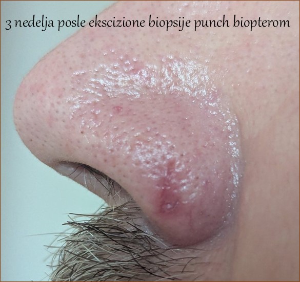 Punch biopsija, metoda izbora za uklanjanje promena sa nosa. Rupice zarastaju per secundam, tako da nema ušivanja, uz maksimalno očuvanje zdravog tkiva. Dijametar punch bioptera se određuje u zavisnosti od veličine promene/a.